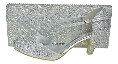 If you want to buy Chic Feet Ladies Womens Silver Glitter Womens Party Diamante Evening Wedding Bridal Prom Mary Jane Low Heel Shoes & Matching Bag - UK Size 6 safely and comfortably please click on the button below: