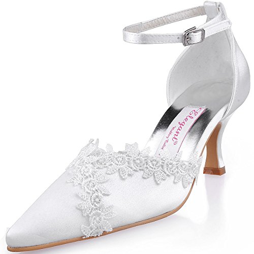 Best Seller! ElegantPark A1049 Women Pointed Toe Appliques Ankle Strap Spool Heels Satin Buckles Wedding Court Shoes White UK 7 Review