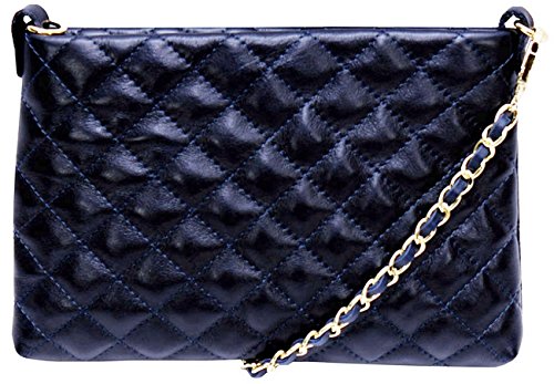 Best Seller! Handbag Bliss Italian Leather Quilted Designer Inspired Classic Clutch / Shoulder / Cross body Handbag (Navy Blue) Review