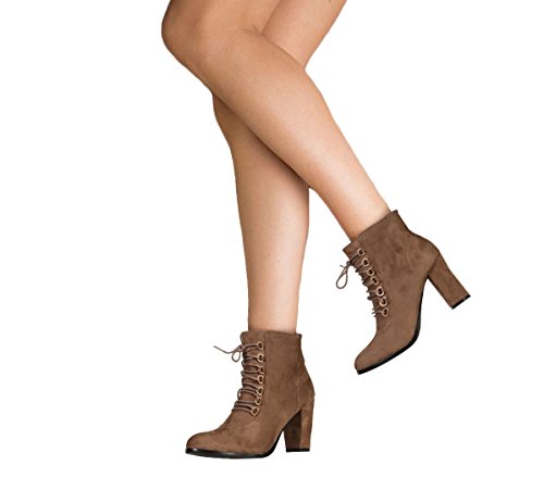 SheLikes offer Womens Ladies Faux Suede Ankle High 8 Loop Laced Boots Over the Ankle Party Block Mid Size Wedge Heel_LM229_KHK_6. This awesome product currently limited units, you can buy it now for £22.99, You save -